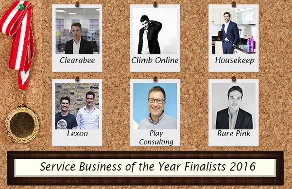 Service Business of the Year 2016: Meet the finalists This award is for exceptional new businesses operating in the service industry, so who are the contenders? Written by Megan Dunsby Published on October 13, 2016 Our experts We are a team of writers, experimenters and researchers providing you with the best advice with zero bias or partiality. ClearabeeClearabee is an on demand rubbish and recycling collection service that allows customers enquire a price estimation, after which a tracked truck is sent out to assess the job and confirm a price – with no commitments beforehand. With multi-million revenues, the start-up has scaled rapidly and employee headcount to 60.View the full profile here.Climb OnlineFounded by 2014 Apprentice winner Mark Wright, digital marketing agency Climb Online provides consumers with SEO services, pay-per-click, social media advertising and web design. The business’ early success enabled Wright to repay Lord Sugar’s £250,000 investment after just nine months. Now, in just its second year of trading, Climb Online expects to double turnover in 2017.View the full profile here.HousekeepFounded by Avin Rabheru, Housekeep is the online booking platform for professional home cleaners. Along with secure key collection, tracking and a £2m insurance policy, the company ensures the same cleaner is sent every time to your home to ensure a regular and reliable service.View the full profile here.LexooConnecting UK small businesses with lawyers, Lexoo was founded by international lawyer Daniel van Binsbergen and web expert and Chris O-Sullivan. To date, over 6,000 businesses – mostly start-ups – have used the service and investors have given their backing; with £1.1m funding raised to date.View the full profile here.Play ConsultingA digital product studio ran by a team of ‘A-list’ ex-game developers, Play Consulting operates on a consultancy basis and has his own internal IP division. Both divisions focus on projects that help people “achieve their goals and live happier, more successful lives”. The business is already “hugely profitable” with revenues having grown by 149% year-on-year with no outside investment.View the full profile here.Rare PinkAn e-commerce platform, Rare Pink allows consumers to commission custom rings from a team of hand-selected global designers – with all diamonds ethically sourced and GIA certified. Last year, the start-up achieved seven-figure sales and shipped more than 600 products worldwide.View the full profile here. Share this post facebook twitter linkedin Written by: Megan Dunsby