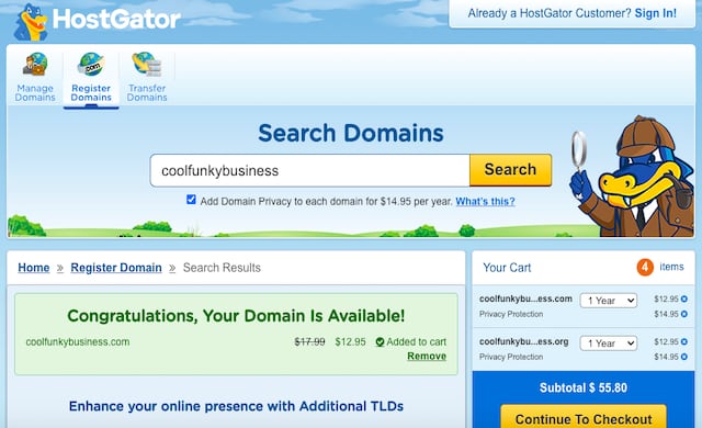 How to buy and register a domain name Choosing the right domain name may be crucial, but so is picking the right domain name registrar. Here's what you need to look out for Written by Henry Williams Updated on 14 January 2022 Our experts Startups was founded over 20 years ago by a serial entrepreneur. Today, our expert team of writers, researchers, and editors work to provide our 4 million readers with useful tips and information, as well as running award-winning campaigns. Our site is governed by the Startups editorial manifesto. Startups.co.uk is reader supported – we may earn a commission from our recommendations, at no extra cost to you and without impacting our editorial impartiality. Wondering which is the best website hosting provider currently on the market? Our guide breaks down key points to consider when choosing your host. Registering the domain name of your business is a huge milestone in its formation. This unique internet identity is how customers, both new and existing, will find you online – so it’s essential to choose one that is easily searchable and represents your brand well.If you’re building your own website, or having one built for you, you’ll have to register your domain name with a domain name registrar. Most providers offer both web hosting services and domain name registration. Our top choice, Bluehost, offers these with some great value plans and regular discounts.Don’t have a website yet? Don’t worry! You don’t need one to register a domain name.This article will tell you how to buy and register a domain name, including how to choose a supplier, the costs involved, and how to choose the most suitable extension. Our top hosting provider: Bluehost Our research shows that Bluehost's packages and tools make it the best hosting provider for small businesses Visit site It only takes a minute. What is a domain name? Choosing a domain extension Domain name providers and costs Bluehost domain Domain.com GoDaddy HostGator 123-reg Privacy and protection Should I buy a premium domain name? Next steps What is a domain name?A domain name is a unique word (or sequence of words) that identifies the online address of your website.A domain name is registered with a domain name provider, such as Bluehost, or Domain.com – two of the best providers according to our research – and paid for on an annual basis.Your domain name should reflect your brand name as closely as possible, or at least contain keywords that are relevant to your business.For example: Startups.co.uk. Choosing a domain extensionA domain extension, otherwise known as a Top Level Domain (TLD), is the last part of your domain name: .com, .org. .co.uk, etc.Their original function was to categorise domain names into groups, with each extension designed to indicate the purpose of the website they were assigned to. For example, .com, the world’s most popular domain extension, is a contraction of ‘commercial’.Today the system is much less rigid, and your domain name provider will give you a huge range of domain name extensions to choose from for your business website.A .com extension ensures that your business has global credibility, and that it can be easily found in Google searches – something that not all other extensions can guarantee.However, using .co.uk is a much better option for a local business that wants to target a UK audience..org, the world’s second most popular TLD, is a contraction of organisation. It’s generally used by non-commercial entities.There are also certain restricted TLDs that can only be used by credentialed businesses, professionals, or individuals, including .biz, .name, and .pro.Talk to your domain name supplier about suitable extensions for your business website. The world’s 5 most popular domain extensions are:.com (used by around 47% of all websites).org.net.us.co Domain name providers and costs 0 out of 0 backward forward Domain + hosting? Cost Visit Bluehost Domain.com GoDaddy HostGator 123-Reg Yes Yes Yes Yes Yes .com – £9.35/y*.org – £7.79/y*.co.uk – £19.49/y* .com $11.99/y*.org $9.99/y*.co.uk- not available com – £0.01/y*.org – £11.01/y*.co.uk – £0.01/y* .com – $19.99/y*.org – $19.99/y*.co.uk – Not available .com – £43.97 per year.org – £43.97 per year.co.uk – £11.99 per year Try Bluehost Try Domain.com Try GoDaddy Try HostGator Visit site A domain name registrar is a company that allows you to buy and register a website domain name, such as US-based Bluehost, a top choice for domain and hosting servicesYou pay an annual fee to maintain possession of that domain name. Generally, you’ll be charged a lower introductory rate, which will renew at a higher rate after the first term.Essentially, all these registrars are providing the same main function. It doesn’t matter which registrar you choose – once you’ve registered a domain name, it’s yours.But there are several factors that should influence your decision when choosing a domain name provider.Price – different providers will charge different fees for the same domainTLDs – some providers only offer common extensions or top level domains (TLDs), such as .com or .net, while others offer more niche optionsAdditional services – some providers offer hosting as well, while some are exclusively for domain name registration (it might be easier to get everything in one place)Domain name management features – an intuitive dashboard is especially useful if you have multiple domainsSupport – it’s unlikely you’ll need any support, but on the off chance that you do, it pays to know it’s thereAll the providers we’re recommending below offer both domain registration and hosting services. It’s usually much cheaper and easier to get both in the same place.To help give an accurate comparison of how much it would cost you to register with different providers, we’ve used the same hypothetical domain name with five different providers and three of the most